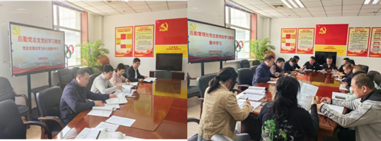 4月16日,后勤党总支理论学习中心组和后勤党总支所属两个党支部开展集中学习,传达了学校全面从严治党工作会议和学校党纪学习教育第1期读书班暨党委理论学习中心组集体学习扩大会议精神。