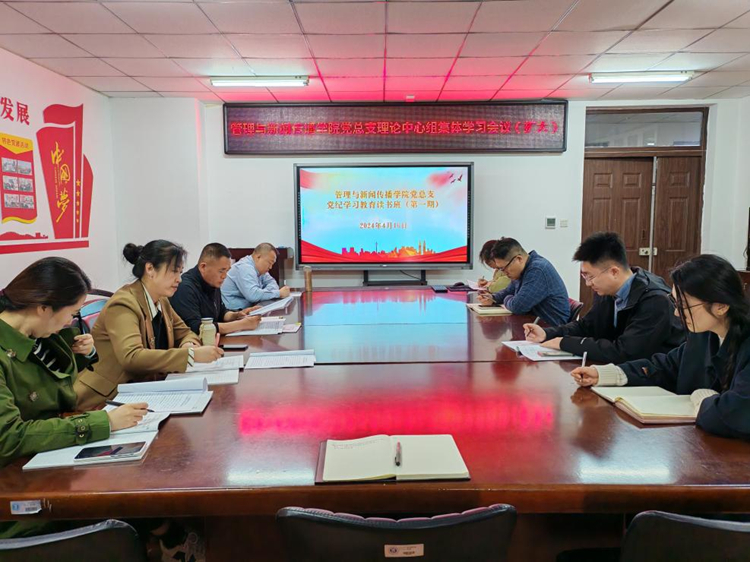 4月16日上午,管理与新闻传播学院党总支组织召开理论学习中心组集体学习扩大会议暨管理与新闻传播学院党总支党纪学习教育读书班(第一期),学院领导班子、党支部书记9人参会。