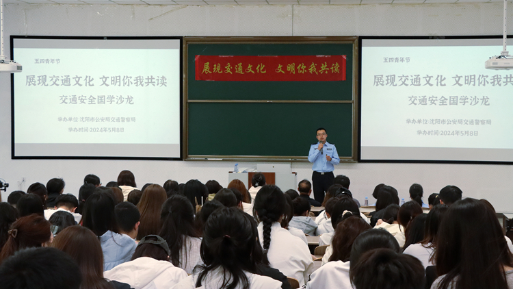 为扎实开展党纪学习教育,在《中华人民共和国道路交通安全法》实施20周年之际,5月8日,管理与新闻传播学院联合辽宁省道路交通安全协会和沈阳市公安局交通警察局举办党纪学习教育之“展现交通文化 文明你我共读”主题讲座。本次活动邀请到沈阳市公安局交通警察局和平大队一级警督张颖警官和浑南大队车宣干事王兴宇警官主讲,辽宁省道路交通安全协会会长秦丽丽、行车指南杂志社副社长柳连平等嘉宾出席。讲座由2021级辅导员杨健主持,学院全体在校生参加。