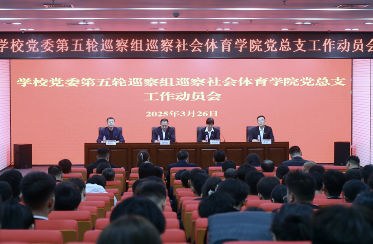 3月26日下午,党委第五轮巡察组巡察社会体育学院党总支工作动员会在图书馆二楼报告厅召开。党委第五轮巡察组全体成员、社会体育学院领导班子、全体教师及学生代表参加会议。社会体育学院院长邹本旭主持会议。
